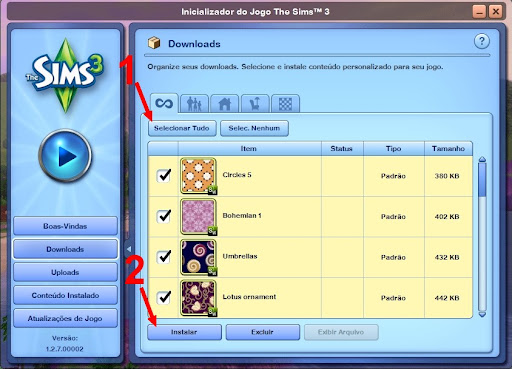 Feito isso, abra o Inicializador do The Sims 3, e clique na aba Downloads: